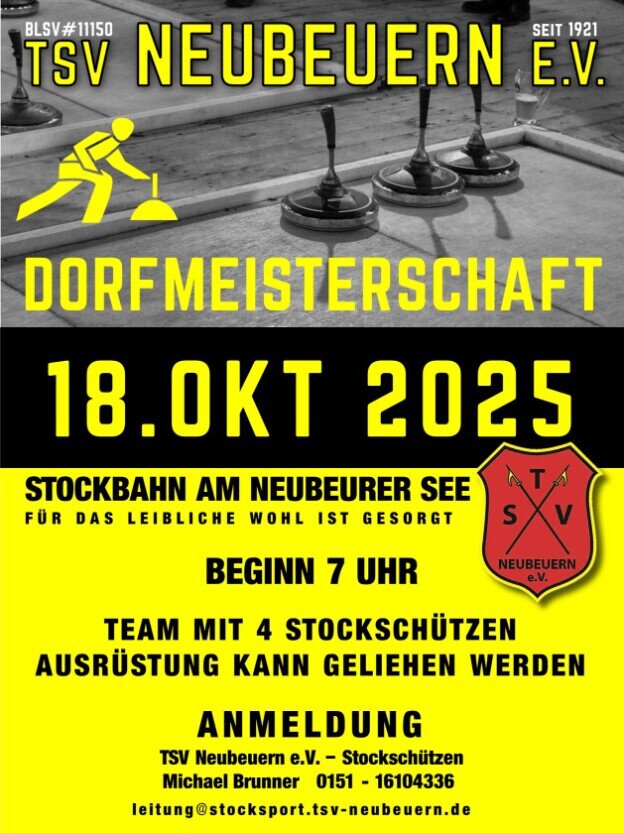 Dorfmeisterschaft der Stockschützen auf der Stockbahn am Neubeurer See am 18.Oktober 2025 ab 7 Uhr.